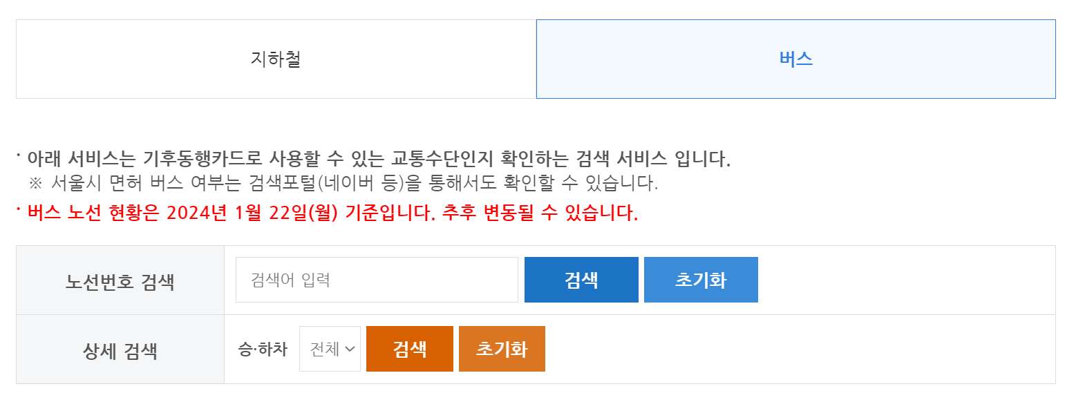 기후동행카드 사용할 수 있는 버스인지 검색할 수 있습니다.